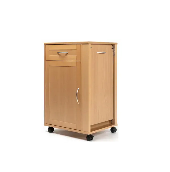 • 385 to szafka przyłóżkowa której główna rama wykonana z litego drzewa bukowego. Obudowa ze sklejki oklejonej naturalna okleiną bukową.