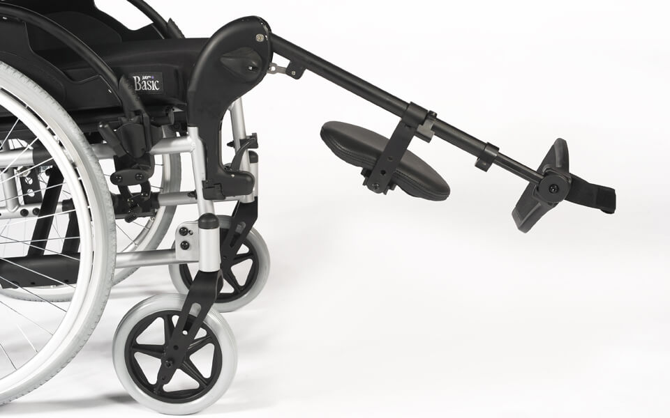 - Podnoszony podnóżek aluminiowy z regulacją kąta i kształtowanym oparciem na łydki.