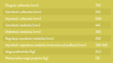 - Sprzęt pomocniczy przeznaczony jest dla osób z dysfunkcjami narządu ruchu, ułatwiający (najazd nad sedes) lub w ograniczonym zakresie do transportu osób z niepełnosprawnościami ruchowymi wewnątrz pomieszczeń.