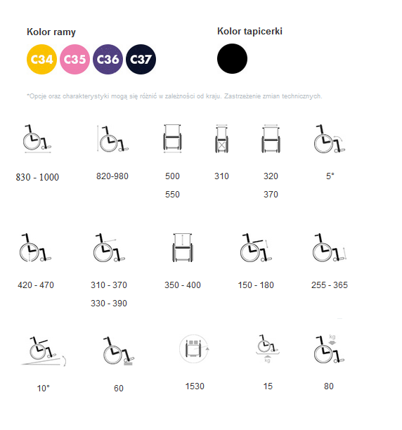 - Wózek posiada m.in zmianę wysokości siedziska od podłoża oraz głębokości siedziska, zmianę kąta nachylenia siedziska oraz środka ciężkości,