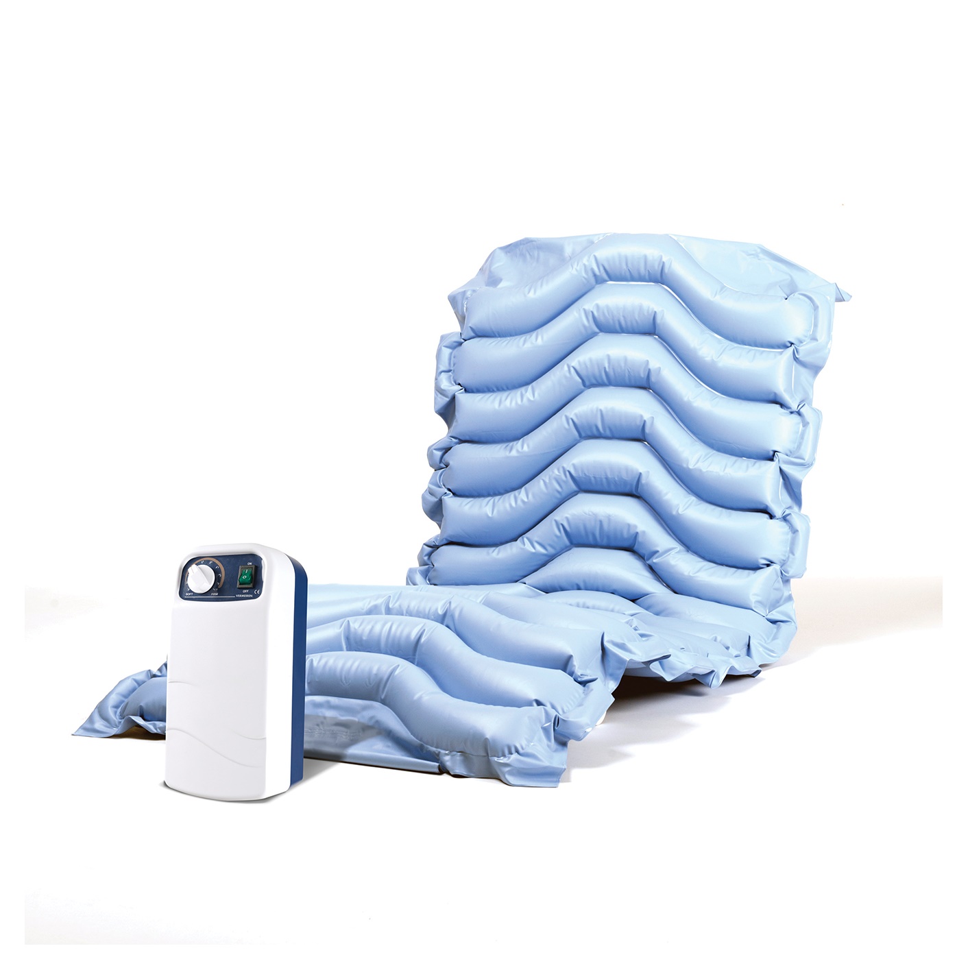 • Materac MAT X2 podstawowy materac zmienno-ciśnieniowy . Niezwykle skuteczny przy profilaktyce i leczeniu odleżyn do I stopnia EPUAP/NPUAP. Unikatowy wygląd (opatentowany) pozwala osiągnąć wysokość materaca 9,5 cm . Zbudowany z 13 rurowych komór niewymiennych. Zaleca się stosowanie materaca razem z dodatkowym materacem gąbkowym , dla lepszej stabilizacji materac wyposażony jest w kołnierz , który zawinięty jest na podkładzie.