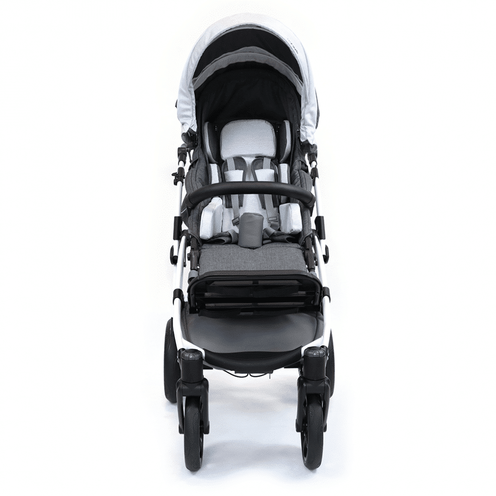 - Dzięki regulowanym pelotom możliwe jest optymalne dopasowanie oparcia do potrzeb dziecka i jego prawidłowe zabezpieczenie. Duże koła żelowe z amortyzacją zarówno z tyłu jak i z przodu ułatwiają komfortowe pokonywanie nierówności.