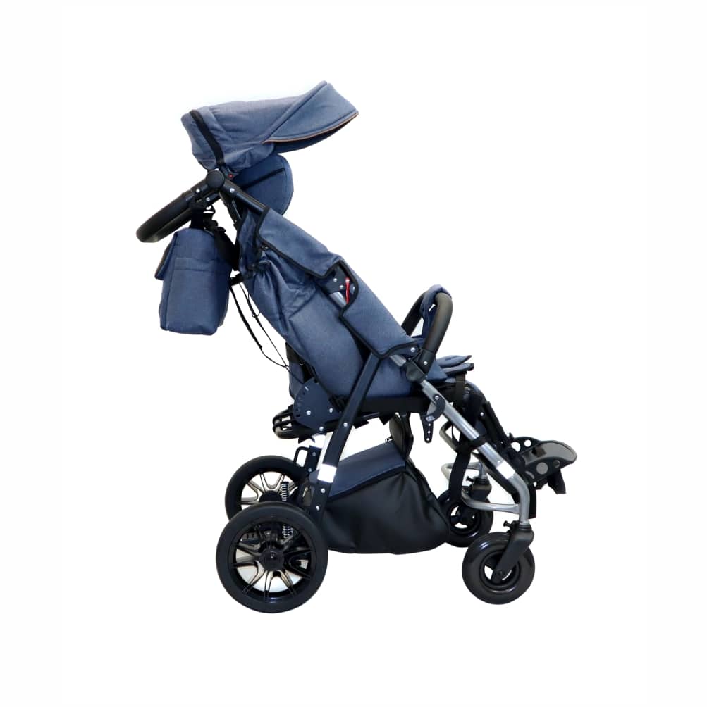• Wózek posiada regulację kątową zarówno siedziska jak i oparcia, dzięki czemu można dziecko prawidłowo posadzić, a nawet usadowić w pozycji leżącej