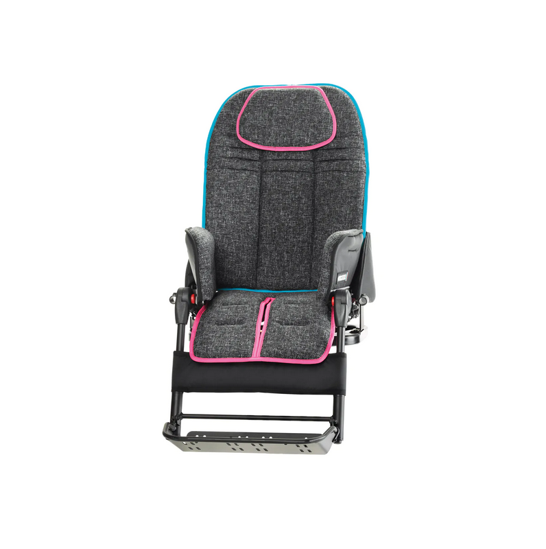 • Składany jest w czworobok, ma regulowany na długość podnóżek oraz możliwość zmiany szerokości i głębokości siedziska, oraz wychylenie w przestrzeni siedziska (tilt)