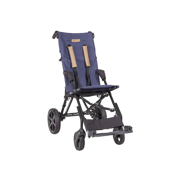 • Patron Corzino to wózek spacerowy przeznaczony dla dzieci z MPD, przepukliną oponowo-rdzeniową, łatwo i intuicyjnie się składa, zawiera regulację wysokości podnóżka oraz regulacje napięcia tapicerki siedziska