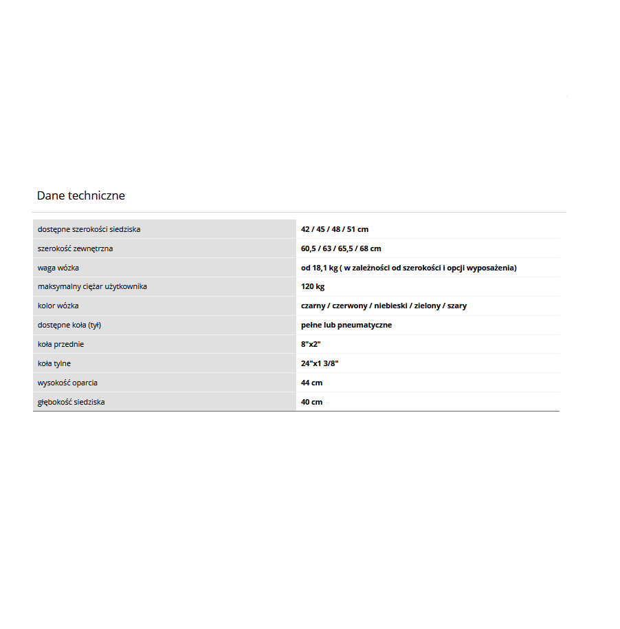 • koła tylne dostosowane do transportu na nierównych powierzchniach