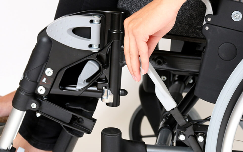 • Łatwe w obsłudze przesuwne siedzisko zapewnia bezpieczne i łatwe wsiadanie i wysiadanie z wózka typu tilt in space. Przesuwając siedzisko do tyłu, użytkownik jest prawidłowo umieszczony na wózku, zmniejszając potrzebę podnoszenia użytkownika.