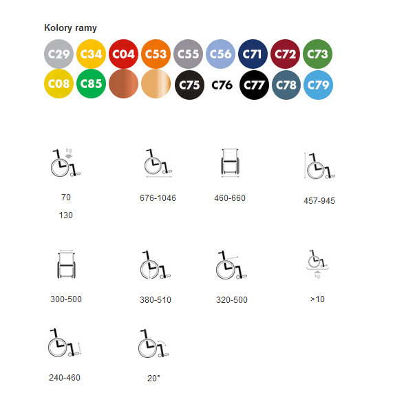 Trwała i wytrzymała rama , bogate wyposażenie opcjonalne , olbrzymi zakres szerokości i głębokości siedziska , różne profile ramy sprawiają , że wózek można skroić pod indywidualne wymaganie niemalże każdego użytkownika.