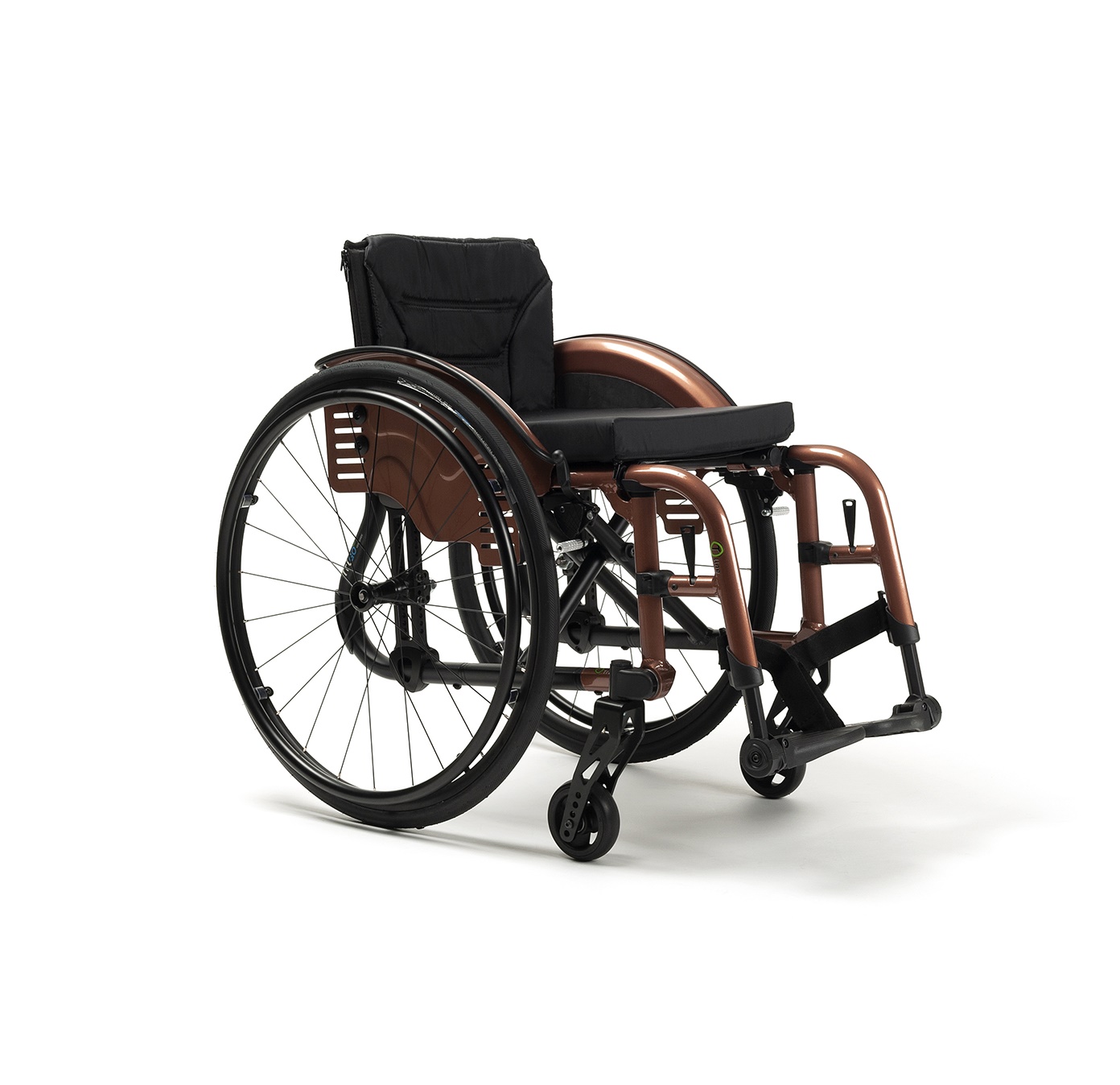 Posiada możliwość regulacji środka ciężkości od pasywnego do aktywnego i wysokości siedziska od ziemi. Najbardziej interesująca jest funkcja regulacji pochylenia kół od 0° do 6° i to już w standardowym wyposażeniu.