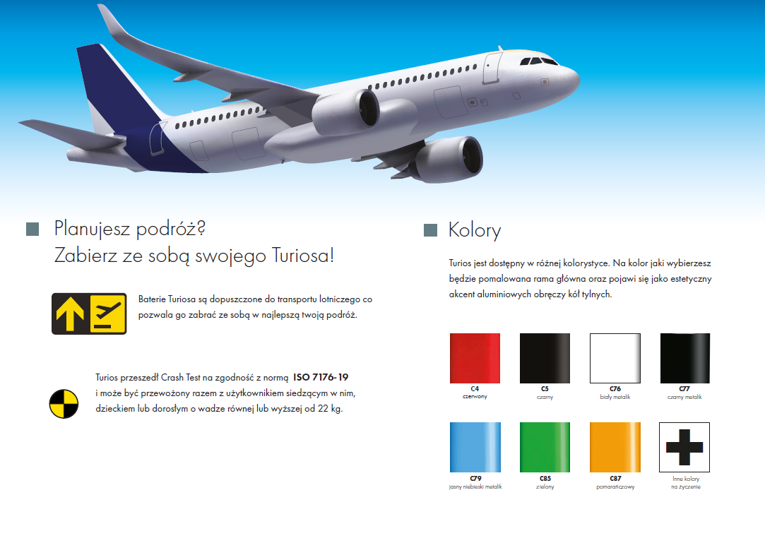 - Turios jest wózkiem konfigurowalnym. Można go wyposażyć w wiele opcji dodatkowych