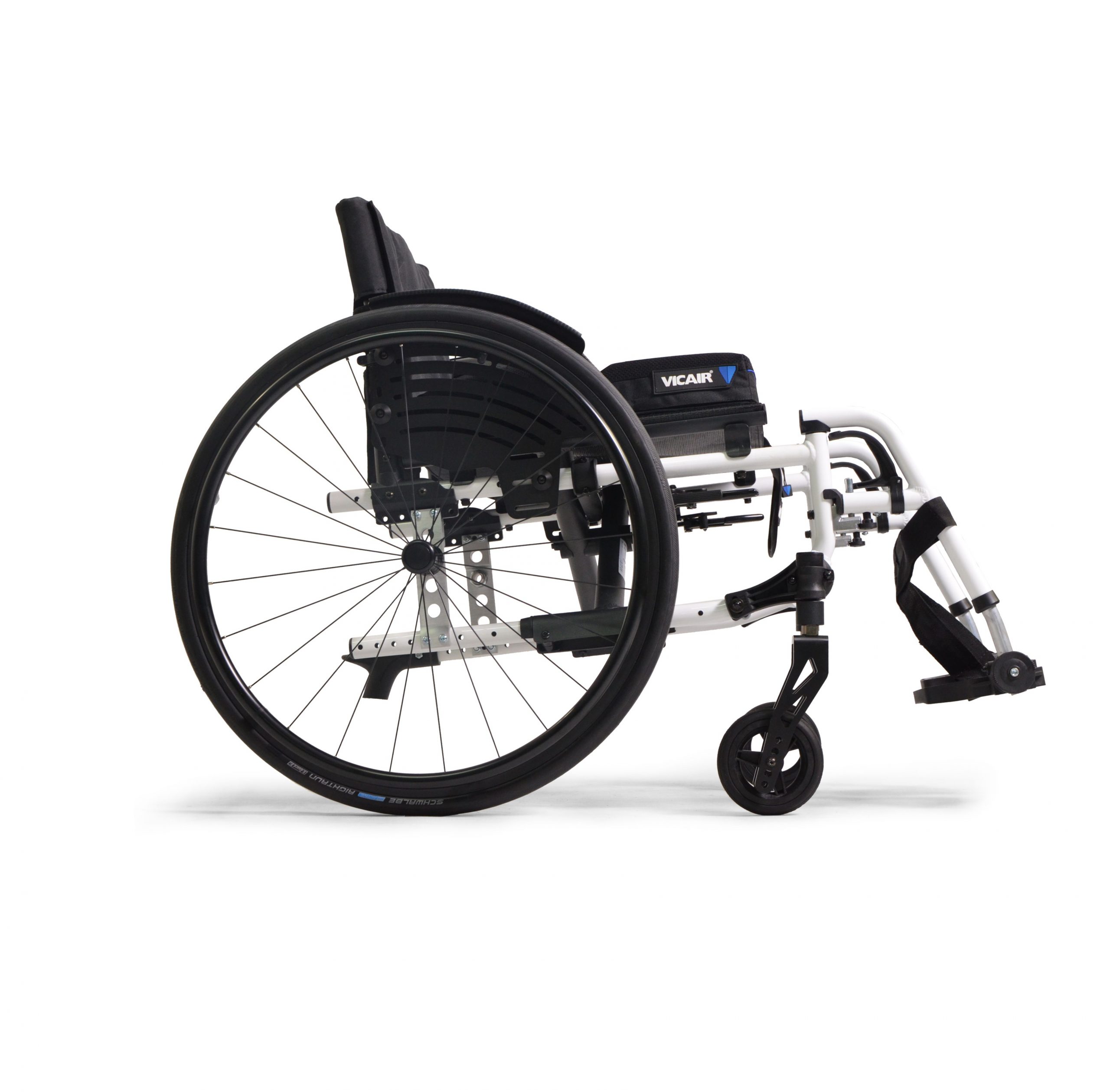 - V500 Active jest wykonany z aluminium, waga w wersji podstawowej wynosi tylko 11,9 kg w całości z kolami tylnymi – nawet w rozmiarze siedziska 48 cm, natomiast waga transportowa bez kół tylnych to tylko 9 kg. Z łatwością poradzisz sobie z załadowaniem wózka do auta. Wytrzymała i trwała konstrukcją