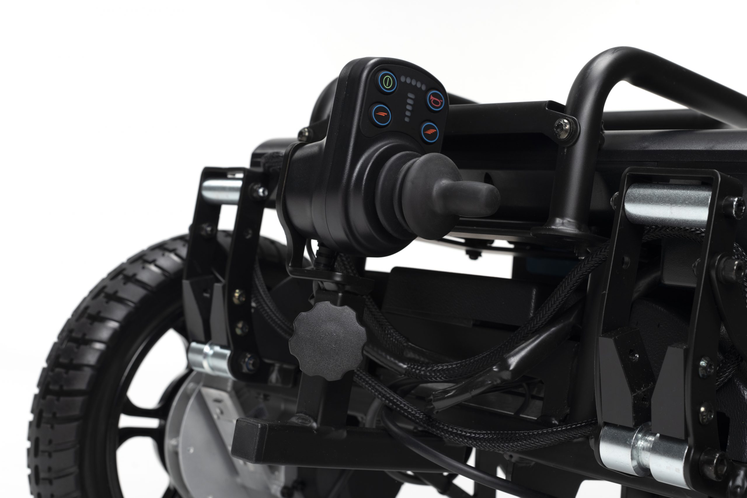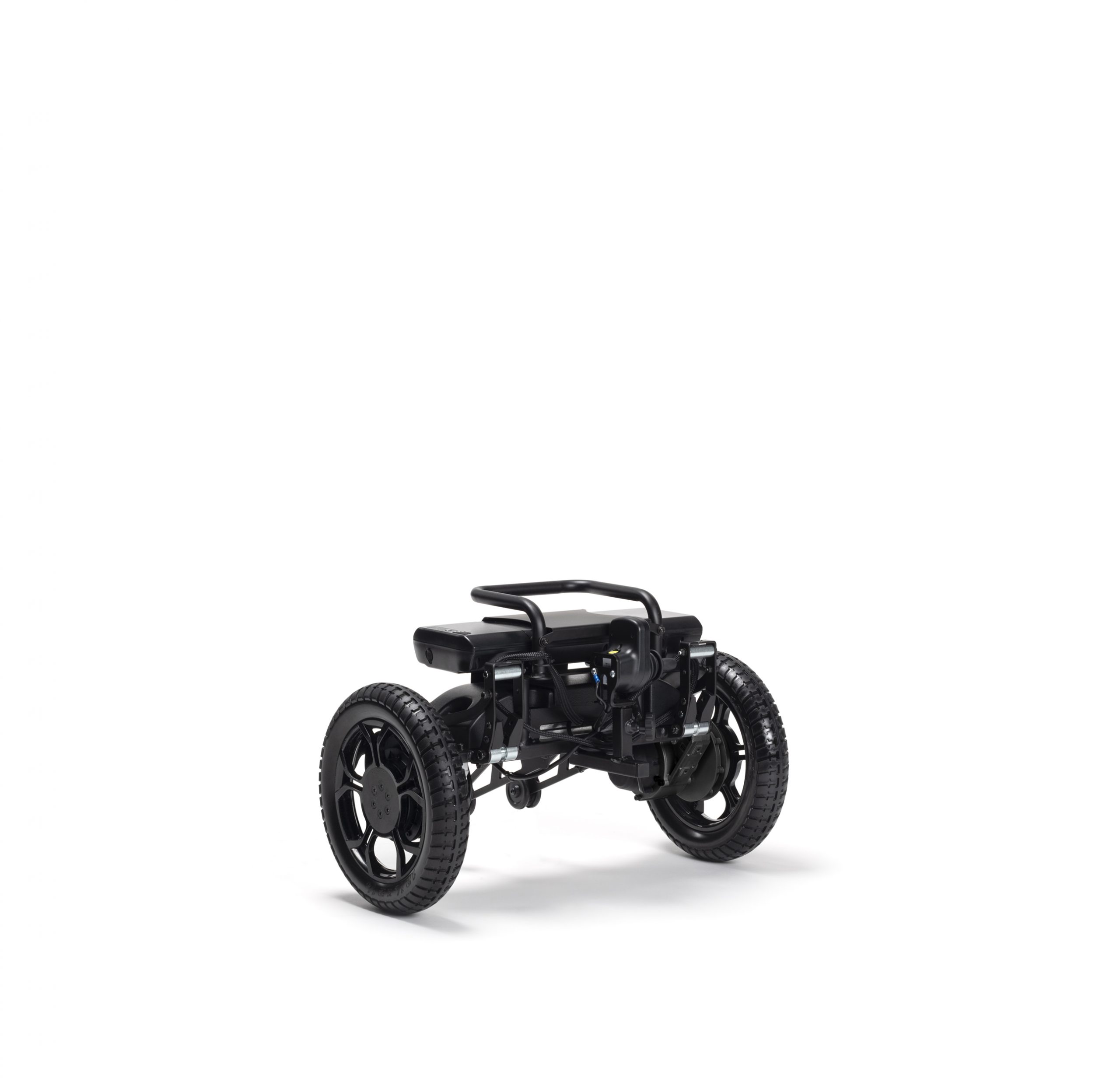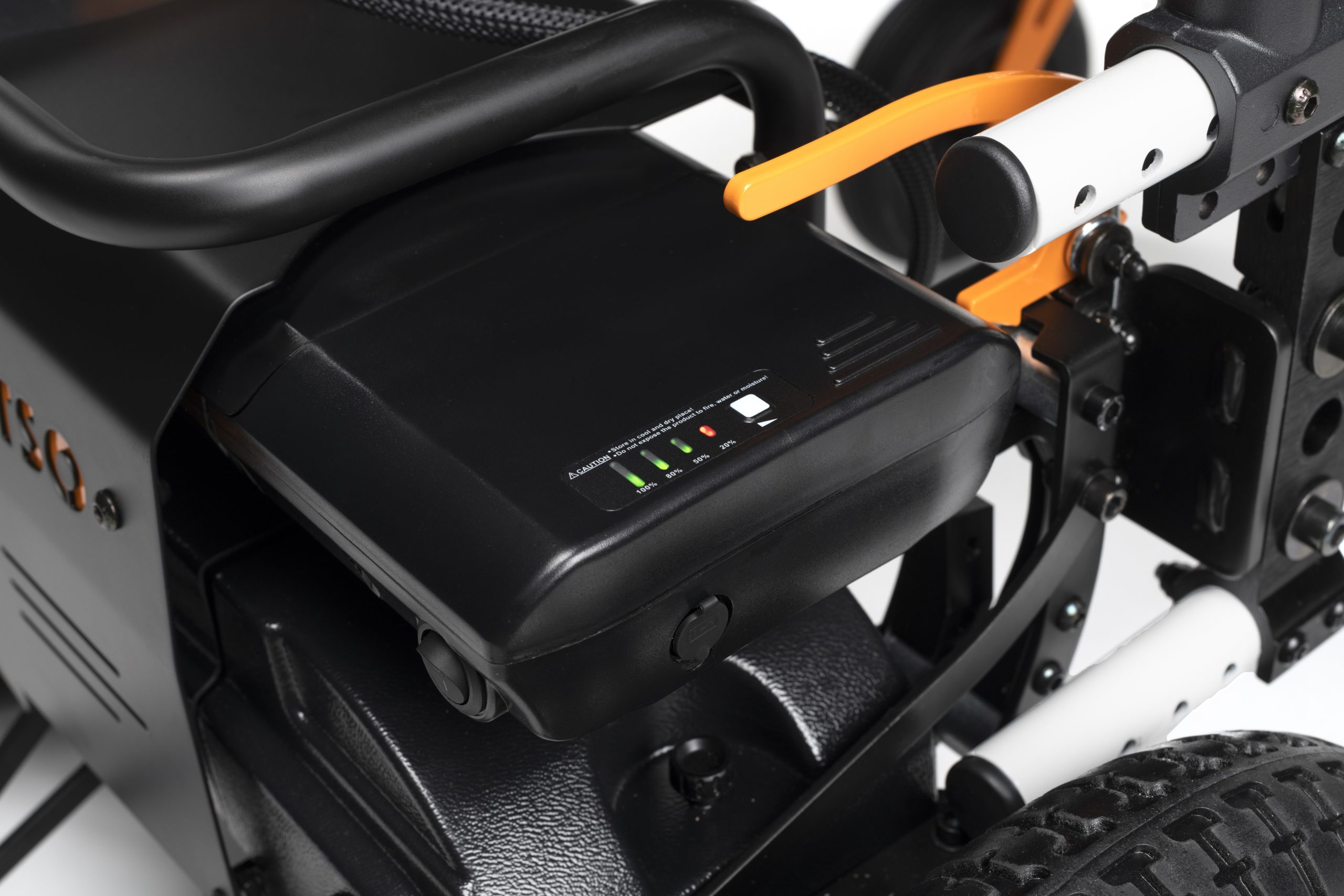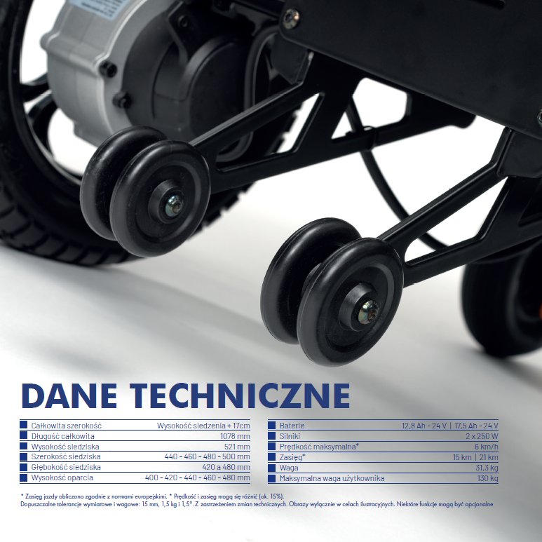 - Stworzony z aluminiowej ramy manualnego wózka z zaawansowanymi funkcjami napędu elektrycznego na tylnych kołach