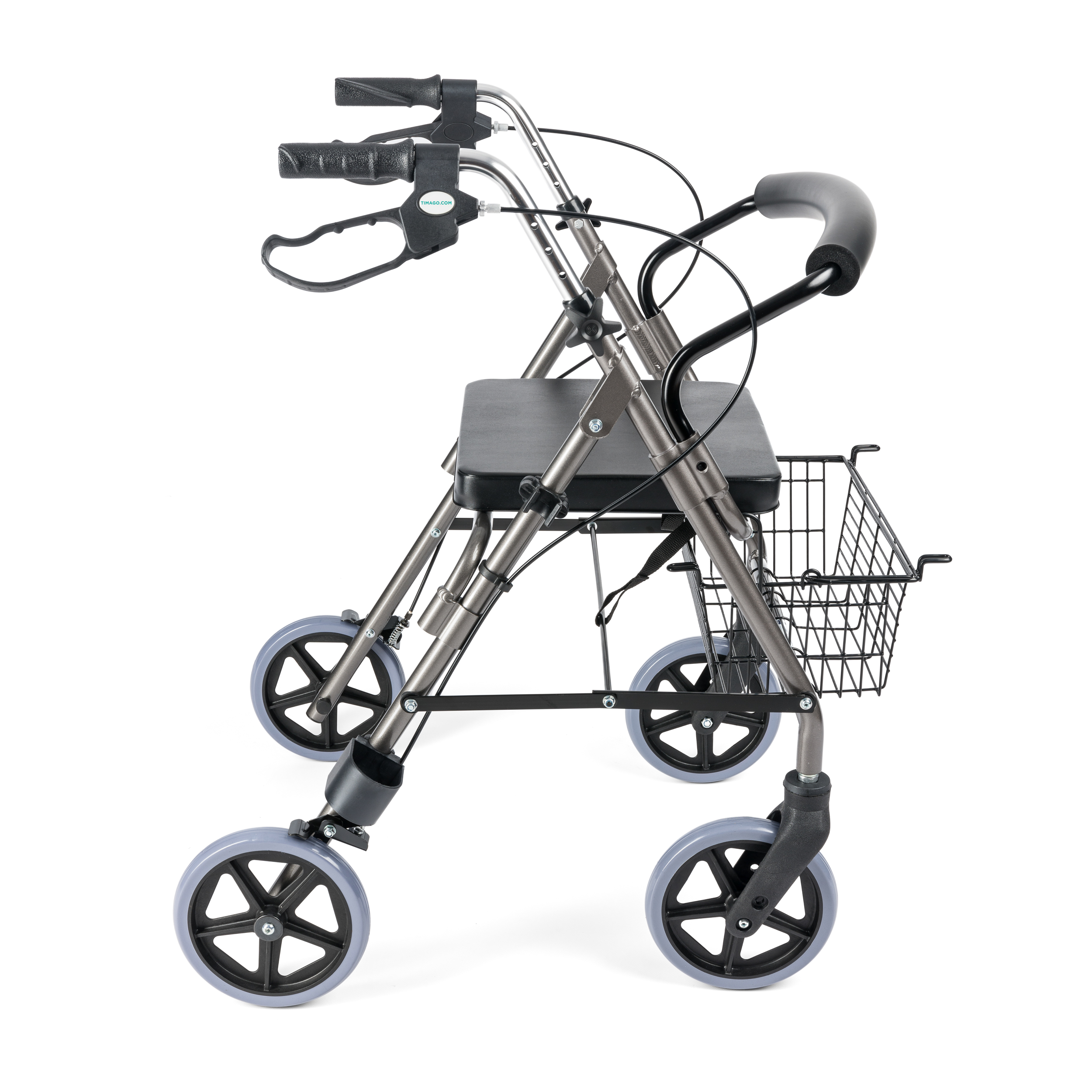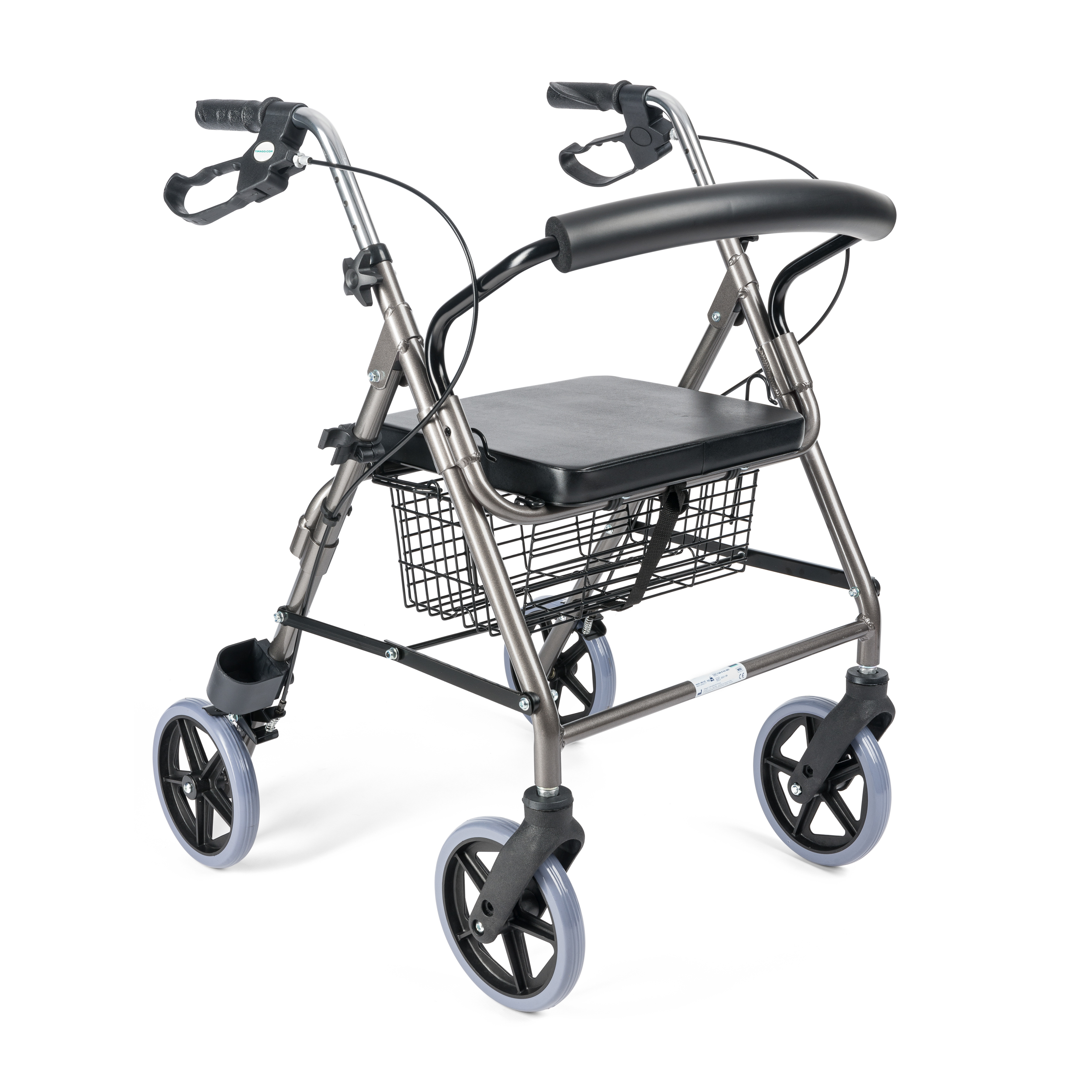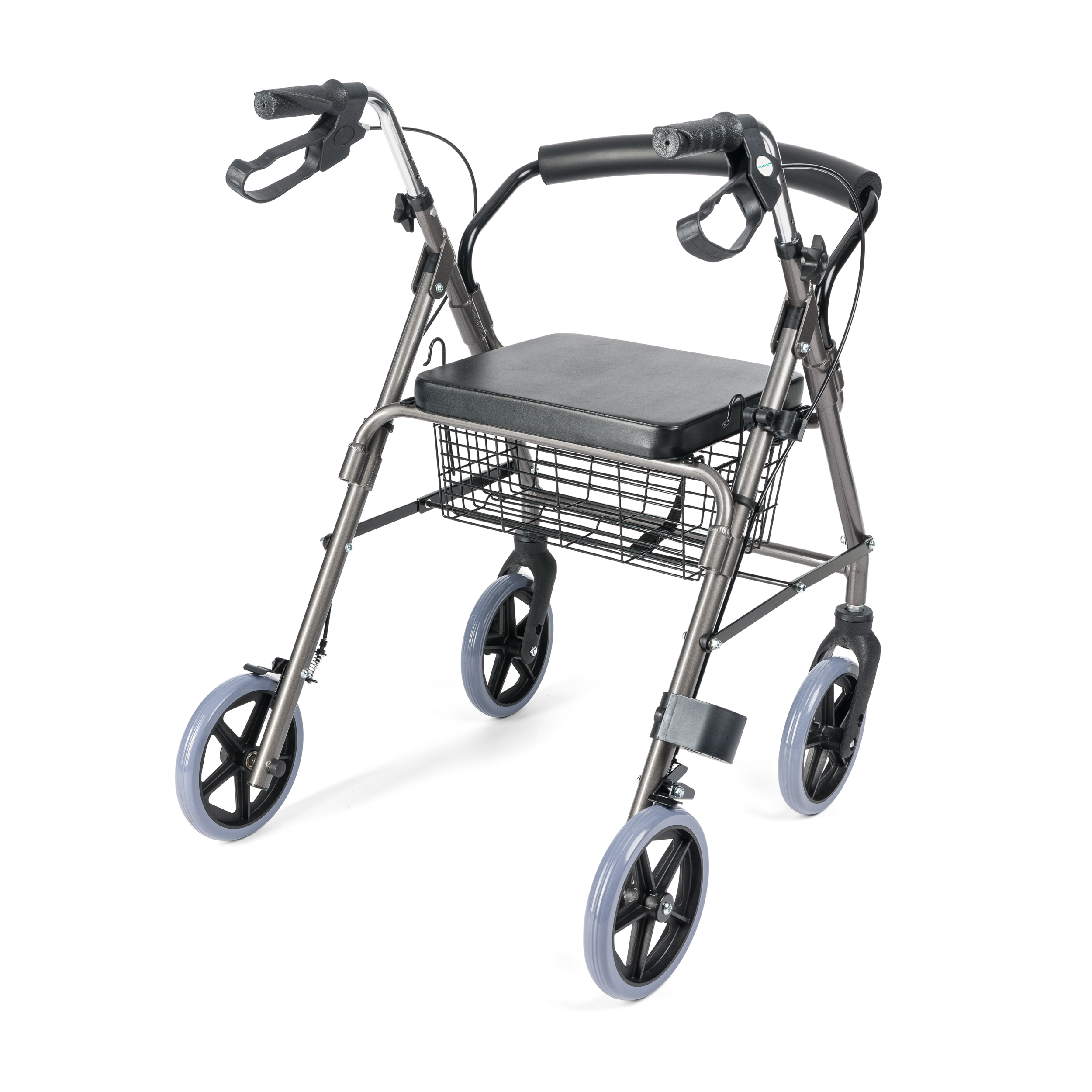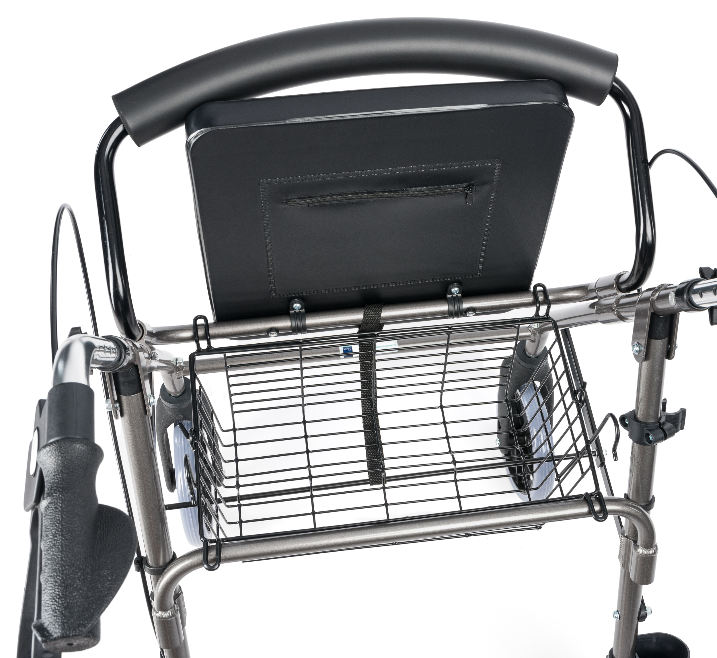 - Podpórka czterokołowa, aluminiowa na czterech kółkach. Niezwykle zwrotna i lekka co pozwala na pełną swobodę poruszania się w sposób bezpieczny i komfortowy. Zastosowanie siedziska z oparciem umożliwia odpoczynek użytkownika podczas użytkowania